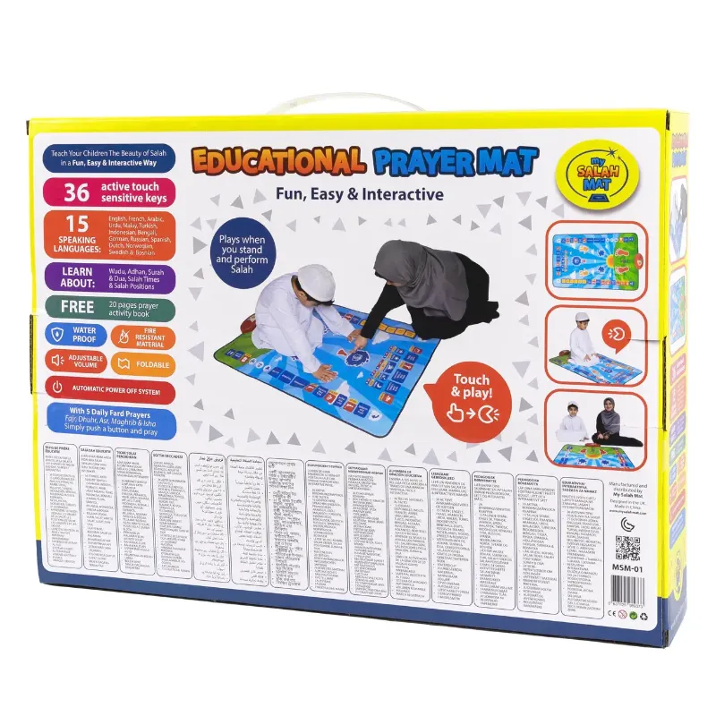 نقدم لك سجادة الصلاة الإلكترونية لتعليم الصلاة للأطفال الصغار، حيث تأتي بتصميم مبتكر تجعل طفلك يتعلم الصلاة بكل سهولة،حيث تدعم 7 لغات مختلفة و36 زر تفاعلي لتساعد طفلك على تعلم الصلاة و ألدعية الدينية.