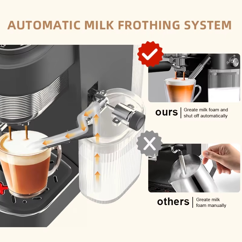 Acceuil > > Machine à Café 4 en 1 Kitchen Lab KT-CM-002 Avec Réservoir de Lait Automatique – 20 Bars – 1.1L