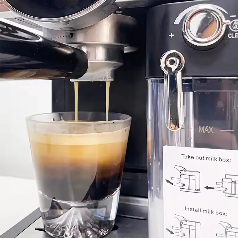 مضخة إسبر يسو وكابتشينو أوتوماتيكية مع هيكل من الفولاذ المقاوم للصدأ .